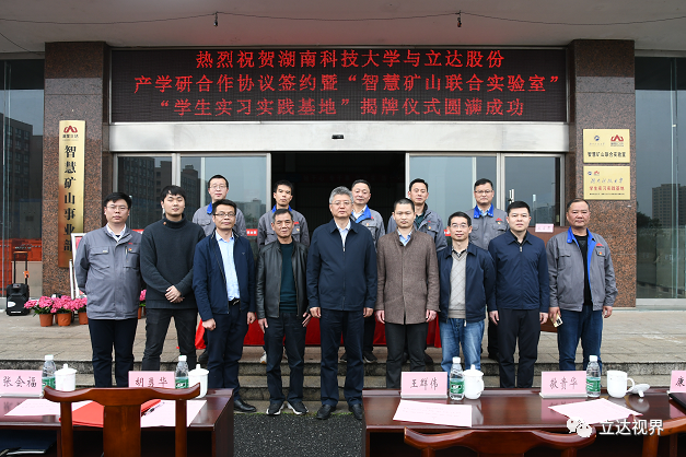 3月9日上午,湘煤立达矿山装备股份有限公司(以下简称立达股份)与湖南科技大学(以下简称湖南科大)产学研战略合作协议签订暨“智慧矿山联合实验室”、“学生实习实践基地”揭牌仪式在立达股份隆重举行。