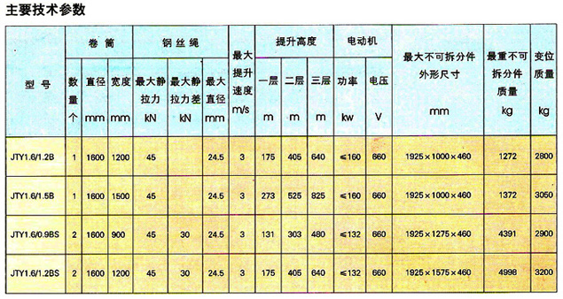 JTY、JTYB和JKY、JKYB系列液压提升机和提升绞车主要由主轴装置、液压马达、深度指示器、盘形制动器、操作台、泵站、底座及电控系统等组成。防爆型提升机和提升绞车采用隔爆型电动机,通过闭式液压系统由液压马达直接驱动主轴装置,提升机的运行速度由液压系统控制。制动系统具有延时二级制动功能,盘形制动器制动灵敏。操作台随时监测液压系统是否正常或确定故障点。 隔爆型电控系统采用矿用隔爆型,各种联锁和保护装置齐全。整机具有操作简便、安全可靠、无级调速、起动和调速换向平稳、运行性能好、布置方式灵活、点动峒室小、安装费用低等优点。